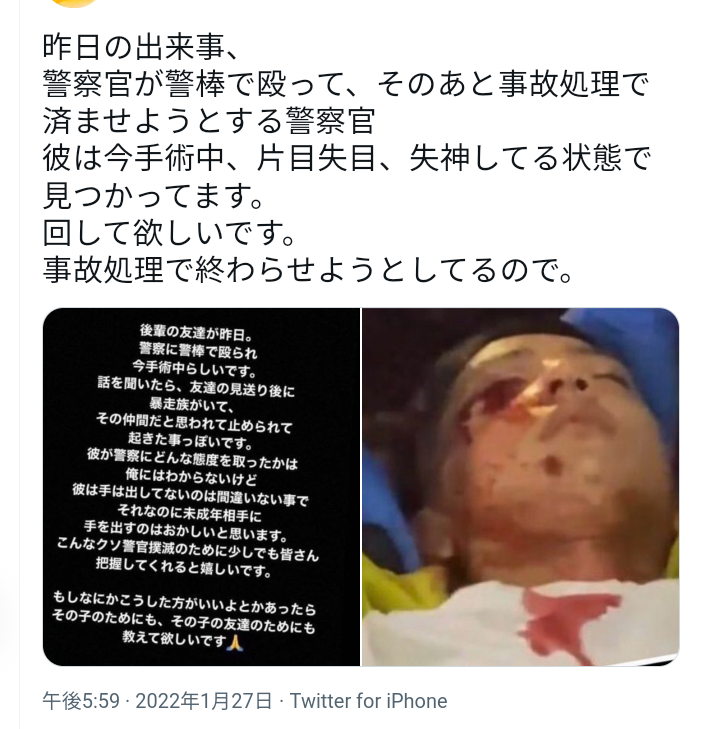 だから警官も顔面狙ったんやろ