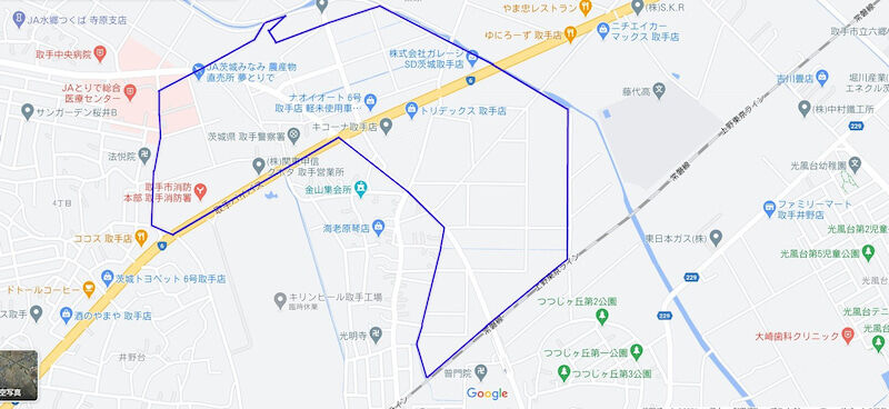 取手警察署の向かいなので歩いて20分ほどです