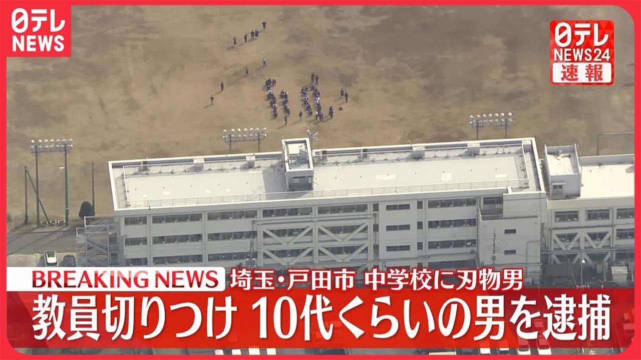1日正午すぎ、埼玉県戸田市の中学校に刃物のようなものを持った男が侵入し、男性教員が切りつけられる事件があり、警察は10代くらいの男を現行犯逮捕しました。男は「誰でもいいから人を殺したいと思った」と供述しているということです。